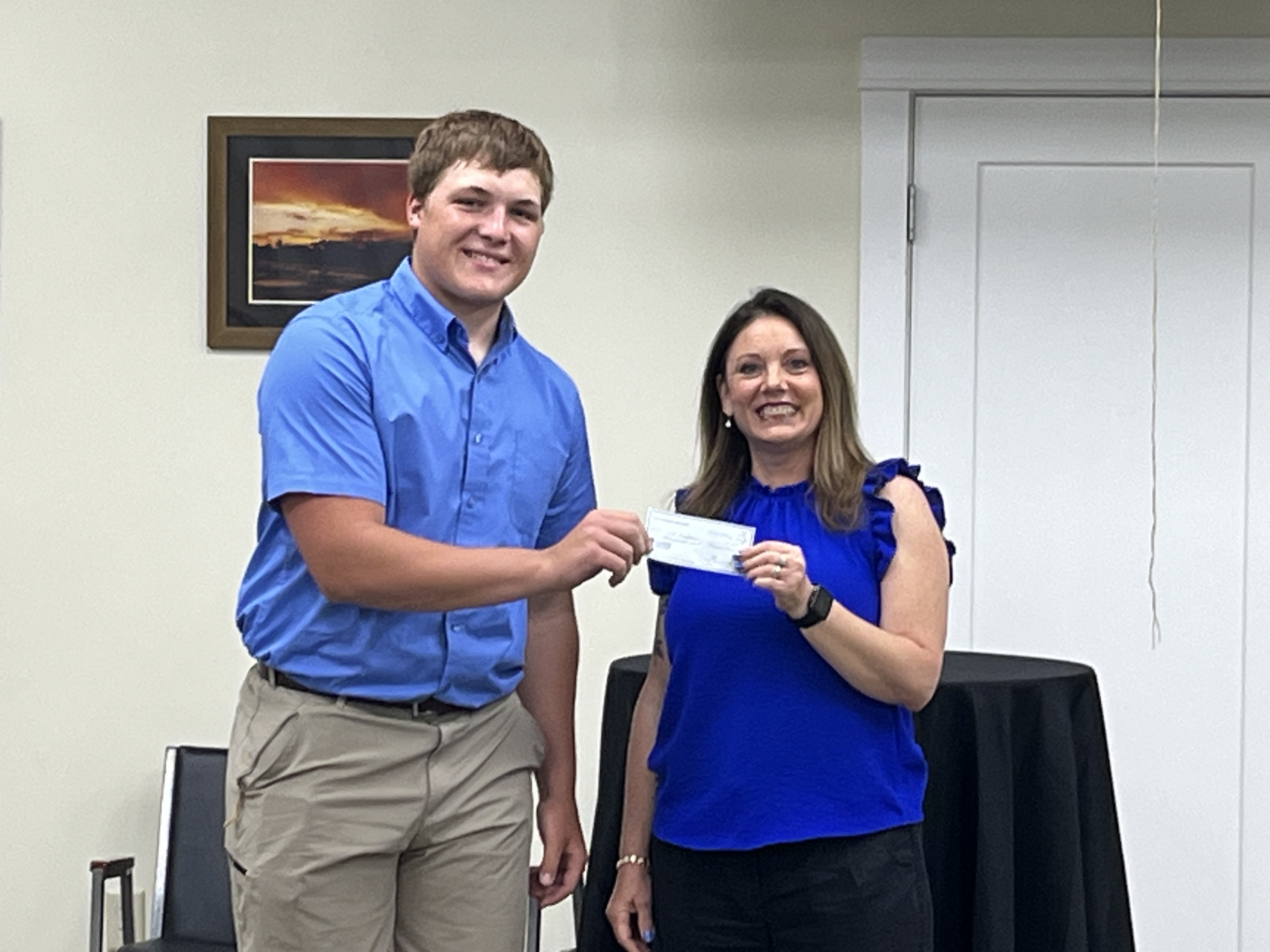 Kim Winter, winner of the $1,000 technical school scholarship, plans to attend Western Tech to study Nursing. Will Anderson, winner of the $1,000 academic scholarship, plans to attend NICC to study welding and also will attend Worsham School of Mortuary Science.